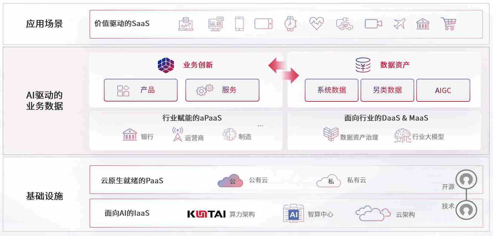 数字时代,,围绕企业数字化转型的关键要素,,亚洲胜游数码开创性的提出数云融合战略和技术体系框架,,,,着力在云原生、、数字原生、、AI原生和信创产业上架构产品和服务能力,,,为处在不同数字化转型阶段的快消零售、、、、汽车、、金融、、、、医疗、、政企、、、教育、、、、运营商等行业客户提供泛在的敏捷IT能力和融合的数据驱动能力,,,,构建跨界融合创新的数字业务场景和新业务模式,,,,助力企业级客户建立面向未来的核心能力和竞争优势,,,,全面推动社会的数字化、、、、智能化转型升级。。。。